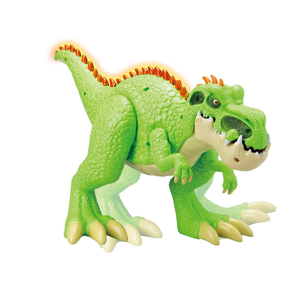 背びれが光って、迫力の叫び声!ボタンを押すと足が動くよ!